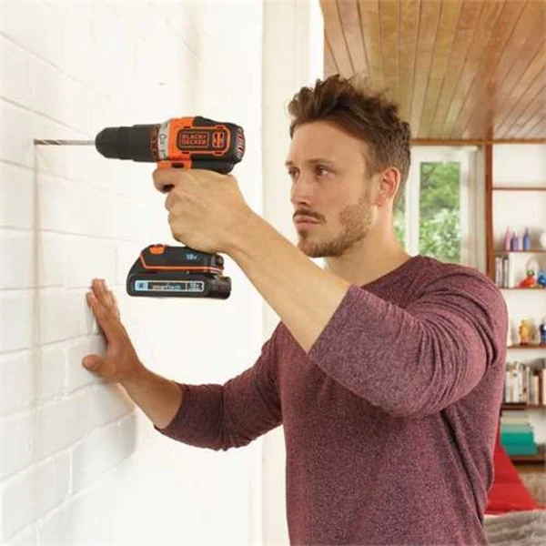 La BDCHD18KST possède la puissance et la vitesse nécessaires pour percer le bois et le métal. Elle dispose également d’une fonction de perceuse à percussion pour percer la pierre. La BDCHD18KST possède deux vitesses, une vitesse élevée pour le perçage dans le bois et le métal, une vitesse faible pour le vissage contrôlé. Avec ses 11 réglages de couple, vous pouvez parfaitement visser différents matériaux. Un éclairage LED illumine la surface de travail lorsque la machine est en cours d’utilisation. La batterie au lithium-ion conserve plus de 80 % de sa charge après 90 jours de non-utilisation, de sorte que le BDCHD18KST est toujours prêt à être utilisé. Grâce à sa vitesse variable, vous disposez d’un contrôle optimal lors du perçage et du vissage. Grâce au système de batterie coulissante, la batterie peut être changée rapidement et facilement et reste toujours bien fixée. Grâce à la poignée souple antidérapante, vous bénéficiez d’un plus grand confort lors du perçage. Dans le coffret inclus, vous pouvez ranger soigneusement le BDCHD18KST et ses accessoires.