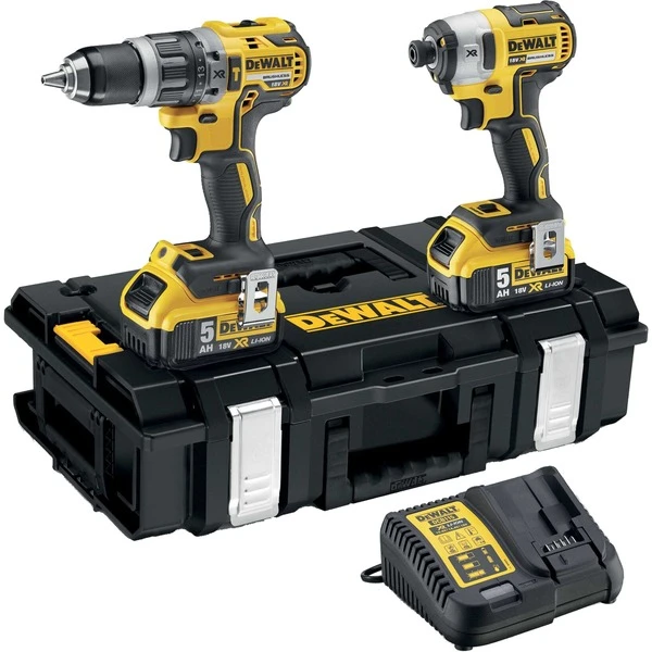 L’ensemble de perceuses combi sans fil DCK266P2 de DeWALT comprend deux outils sans fil de haute qualité de 18 volts pour le perçage, le vissage et le meulage : la perceuse combi sans fil à deux vitesses DCD796 et la clé à chocs sans fil DCF887 à 3 étages. L’ensemble d’outils sans fil DCK266P2 est fourni avec une Tough Box DS150 et deux batteries Li-Ion d’une capacité de stockage élevée de 5,0Ah (peut être utilisé dans toutes les machines sans fil XR 18 Volts).