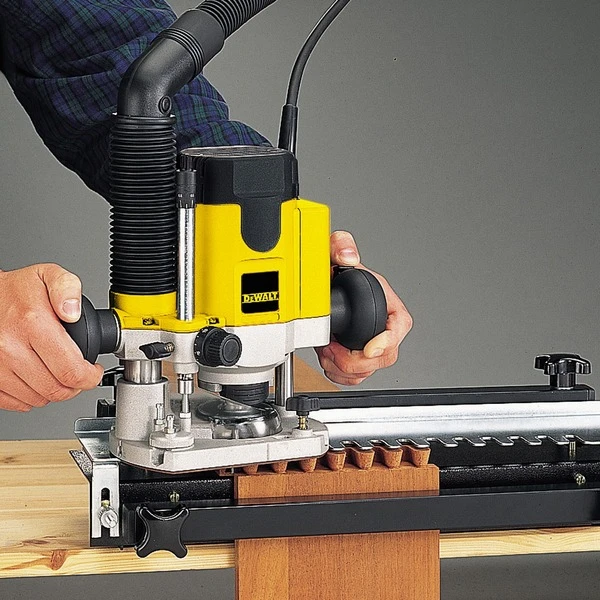 Le routeur DeWalt DW622KT avec porte-outils pour fraises de 8 mm et 12 mm convient aux tâches exigeantes dans tous les types de bois. L’électronique à arbre plein à vitesse constante permet un modèle de fraisage uniforme, même sous charge. La profondeur de fraisage peut être ajustée via un réglage fin avec un pas de 0,1 mm. Un démarrage progressif électronique empêche la machine de se perdre lors du démarrage. Les deux colonnes de panier de fraisage résistantes à la torsion dans le boîtier en aluminium moulé sous pression de haute qualité garantissent une précision maximale, et le puissant système d’extraction avec extraction innovante directement à travers la colonne du panier de fraisage permet un travail sans poussière. Le verrouillage de la broche du routeur DW622KT garantit un changement de fraise facile et rapide.