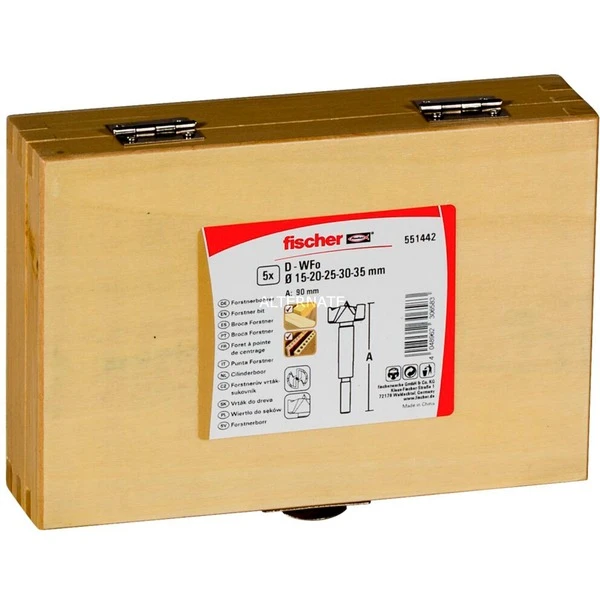 L’ensemble de perceuses Forstner D-WFo de fischer contient cinq perceuses avec une pointe de centrage. Les bords circonférentiels dentés permettent un perçage rapide et sans déchirure, et les bords de coupe principaux décalés au sol assurent une progression rapide du forage. La pointe de centrage permet un perçage facile et précis et l’empêche de se perdre sur des surfaces lisses. L’arbre de cylindre détaché sert de protection contre les blessures lorsque le foret se coince. L’ensemble de forage Forstner D-WFo convient au forage de forages profonds, dimensionnellement précis et sans éclats dans le bois dur (par exemple, hêtre, chêne), les poutres en bois, les résineux, le bois et les matériaux de construction de panneaux, pour la production de trous aveugles, de trous traversants et de nids de poule ainsi que pour le forage de trous de noeud.