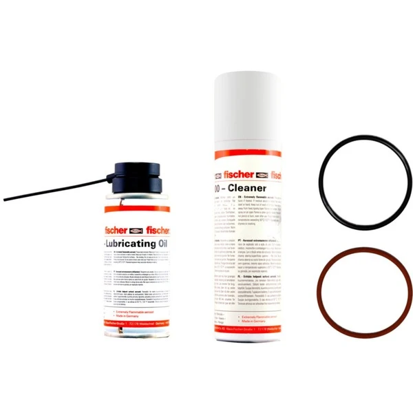 Le kit de nettoyage pour FGC 100 contient 150ml de nettoyant, 100ml d’huile lubrifiante et deux bagues d’étanchéité en caoutchouc. Il convient au nettoyage et à l’entretien du dispositif de réglage fischer à essence FGC 100.
