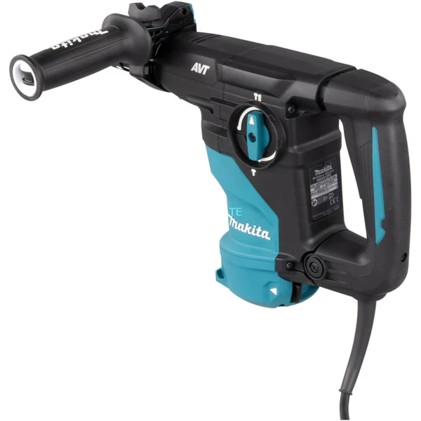 Le marteau combiné Makita HR3012FCJ est un marteau perforateur et ciseau doté d’une technologie anti-vibration, d’un mandrin à changement rapide et d’une butée de profondeur réglable pour un usage professionnel. Il convient au forage par impact et au forage en brique, en béton ou en pierre, au ciselage et au forage en bois, en métal, en céramique ou en plastique. La résistance à l’impact unique atteint jusqu’à 3,9 joules, dans le béton, la capacité de forage peut atteindre 30 mm. La technologie anti-vibration AVT commence là où les vibrations gênantes et fatigantes se produisent réellement, à l’intérieur de la machine. Un poids d’équilibrage de masse sur le mécanisme d’impact absorbe les marges de recul. En conséquence, la machine fonctionne nettement plus silencieusement et les symptômes de fatigue sont considérablement réduits. L’embrayage encliquetable protège contre le verrouillage soudain du ciseau. Le porte-outil SDS Plus permet un changement très rapide de la fixation de l’outil. Le marteau combiné HR3012FCJ offre également un amortissement supplémentaire des vibrations grâce à la poignée gainée montée sur ressort et à une double LED lumineuse pour éclairer les zones de travail sombres. En outre, le marteau combiné est également équipé d’un mandrin de forage à changement rapide pour les perceuses cylindriques.